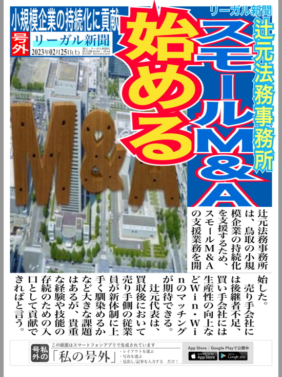 辻元法務事務所は、鳥取県の小規模企業の持続化を支援するため、スモールM&Aの支援業務を開始しました。