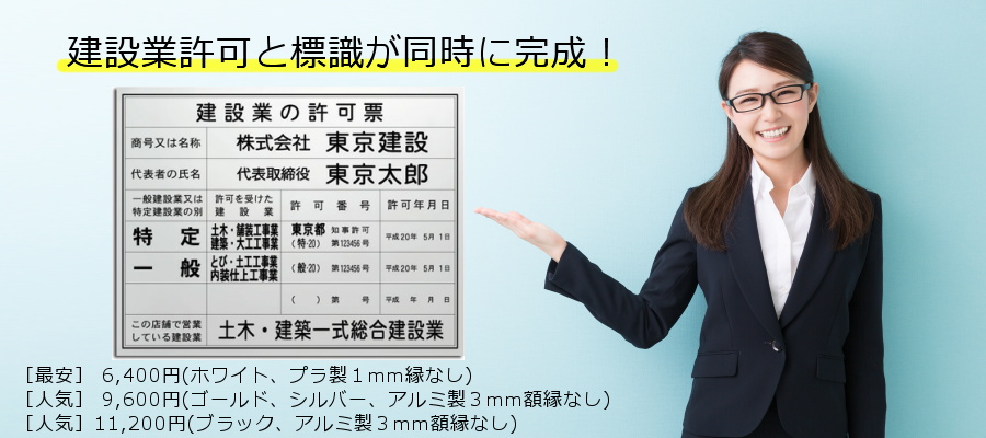 当事務所では、看板製作会社との提携により、建設業許可の取得と同時に『建設業許可票』の作成が済みます。